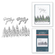 A set of two press plates and one thin metal cutting die. The largest press plate is a line of beautiful evergreen trees which makes a beautiful border. The set also includes a Season's Greetings sentiment with its coordinating die.