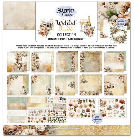 3 Quarter Designs, 12x12 Designer Paper & Diecuts Set, Wedded Bliss Collection