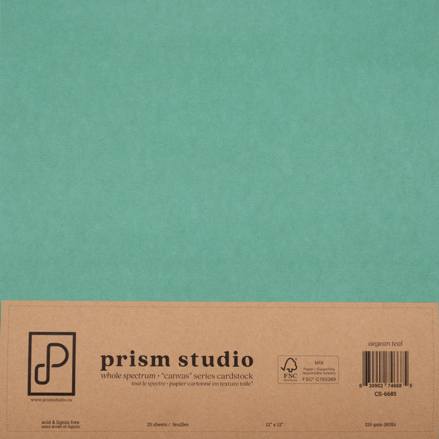 Prism Studio, 12X12 Whole Spectrum "Canvas" Series Textured Cardstock, Aegean Teal