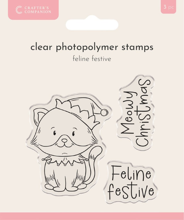 The Feline Festive Photopolymer Stamp set by Crafter's Companion is the purr-fect addition to your handmade cat-themed Christmas cards and decorations.