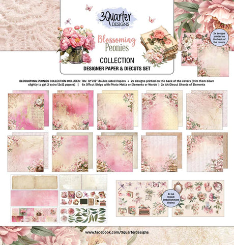 3 Quater Designs, Blossoming Peonies 6x6 Paper Pack