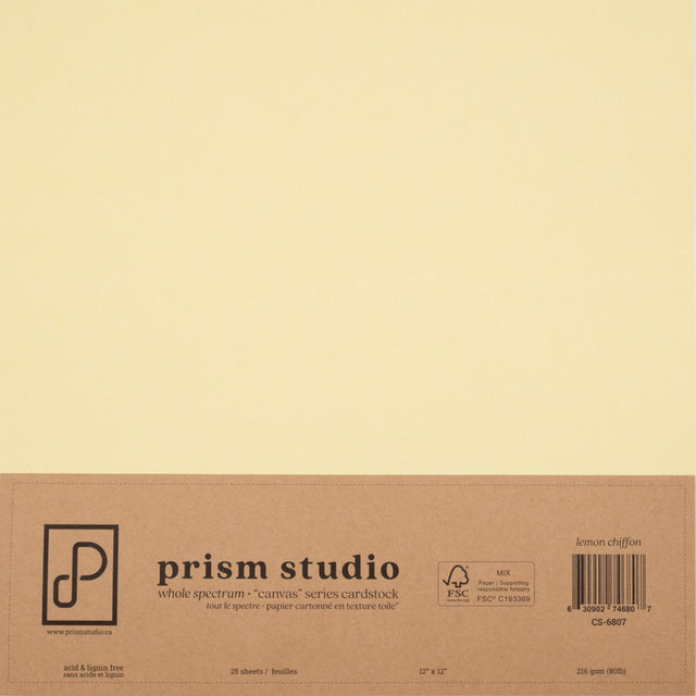 Prism Studio, 12X12 Whole Spectrum "Canvas" Series Textured Cardstock, Lemon Chiffon