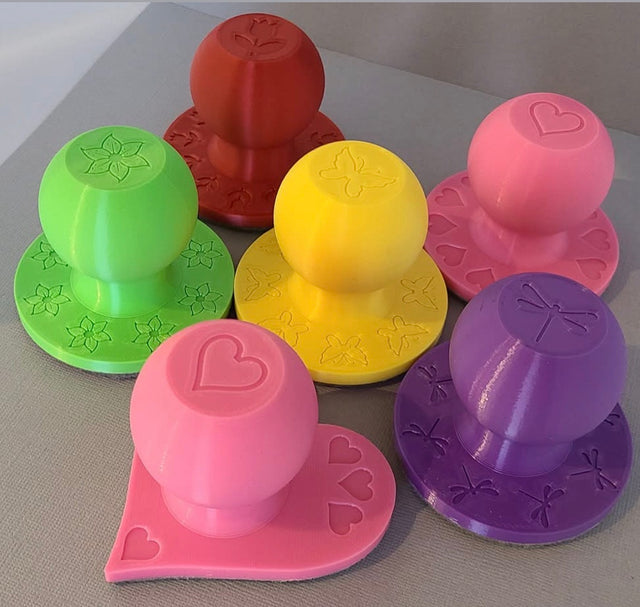 these tools have a lovely felt bottom on them that allow them to glide easily over the top of the stamp platforms. they evenly put pressure to help get a good stamping moment