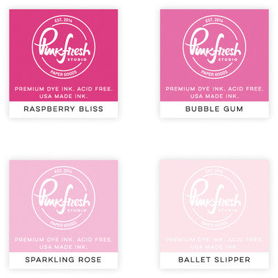 A pack 4 mini ink cubes. Colors included are Raspberry Bliss, Bubble Gum, Sparkling Rose and Ballet Slipper